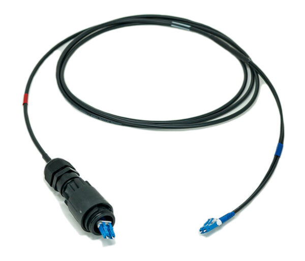 NetSource’s Full AXS® Fiber Assemblies are designed for direct outdoor fiber connections in wireless networks, offering a compact, rugged solution for high-performance optical links. Featuring a 1 or 2-fiber LC interface, these assemblies support both singlemode and multimode applications and are built to withstand demanding environmental conditions. The unique Full AXS® design allows for transceiver installation or removal through the bulkhead—eliminating the need to open the remote radio head (RRH), significantly reducing service time and risk. With a one-hand bayonet-style mating and sealed, IP-rated housing, these assemblies are ideal for fiber to the antenna (FTTA), 5G, and other outdoor telecom deployments. Compatible with armored, indoor/outdoor, and tactical cable types, they offer flexibility without sacrificing durability.