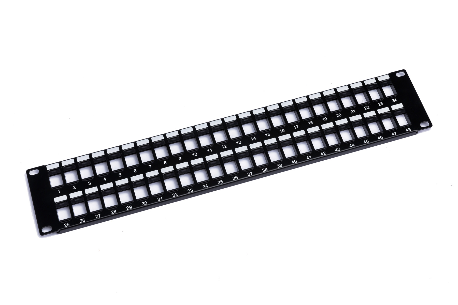 Net Source’s Keystone Patch Panels offer a flexible, field-configurable solution for structured cabling environments. Designed to accept standard snap-in keystone jacks and multimedia modules, these panels make it easy to customize port layouts for voice, data, and fiber applications. Available in 24- and 48-port configurations, each panel includes a removable bezel and fits standard 19″ racks, providing a clean, professional appearance for telecom rooms and network closets.