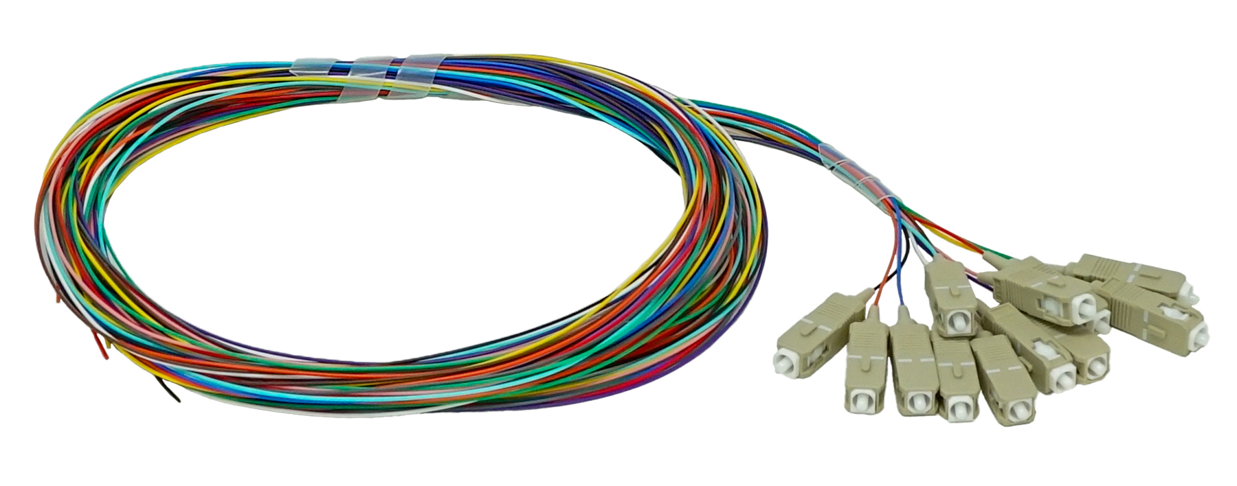 NetSource’s Fiber Pigtails provide a high-performance, factory-terminated solution for splicing and terminating fibers in network access points, splice trays, and patch enclosures. Available in 900µm tight-buffered, 2mm, 3mm, and Ribbon jacketed constructions, these pigtails are pre-polished with LC, SC, ST, or FC connectors in either UPC or APC configurations.